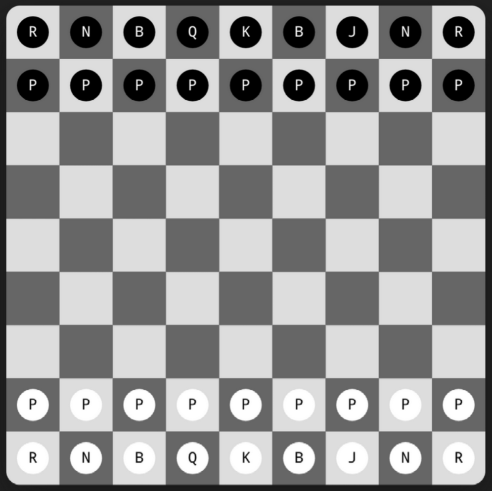 An online-play and table-friendly variant featuring the Joker (freezes threats) and En Croissant (a twist on en passant). Freeze, flank, and discover new tactics.